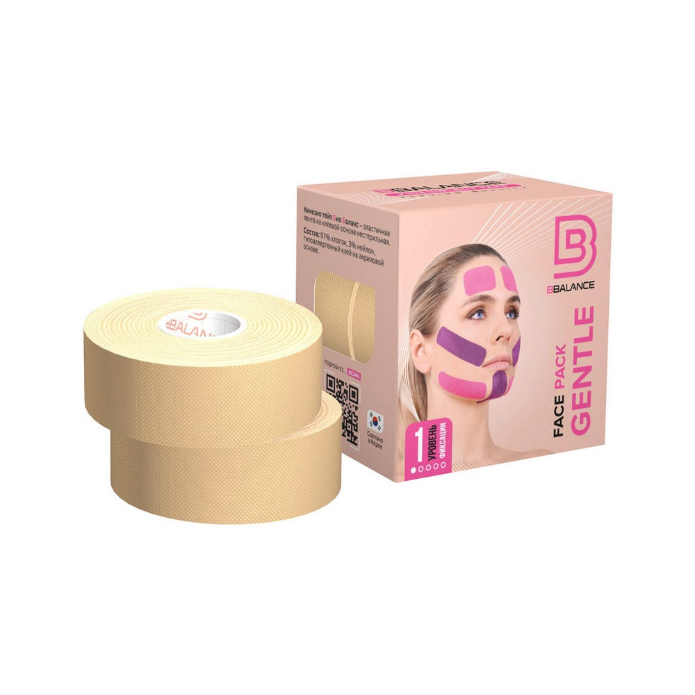 Тейп кинезио для лица BBTape FACE PACK GENTLE, 2,5см. х 5м., бежевый, 2 рулона