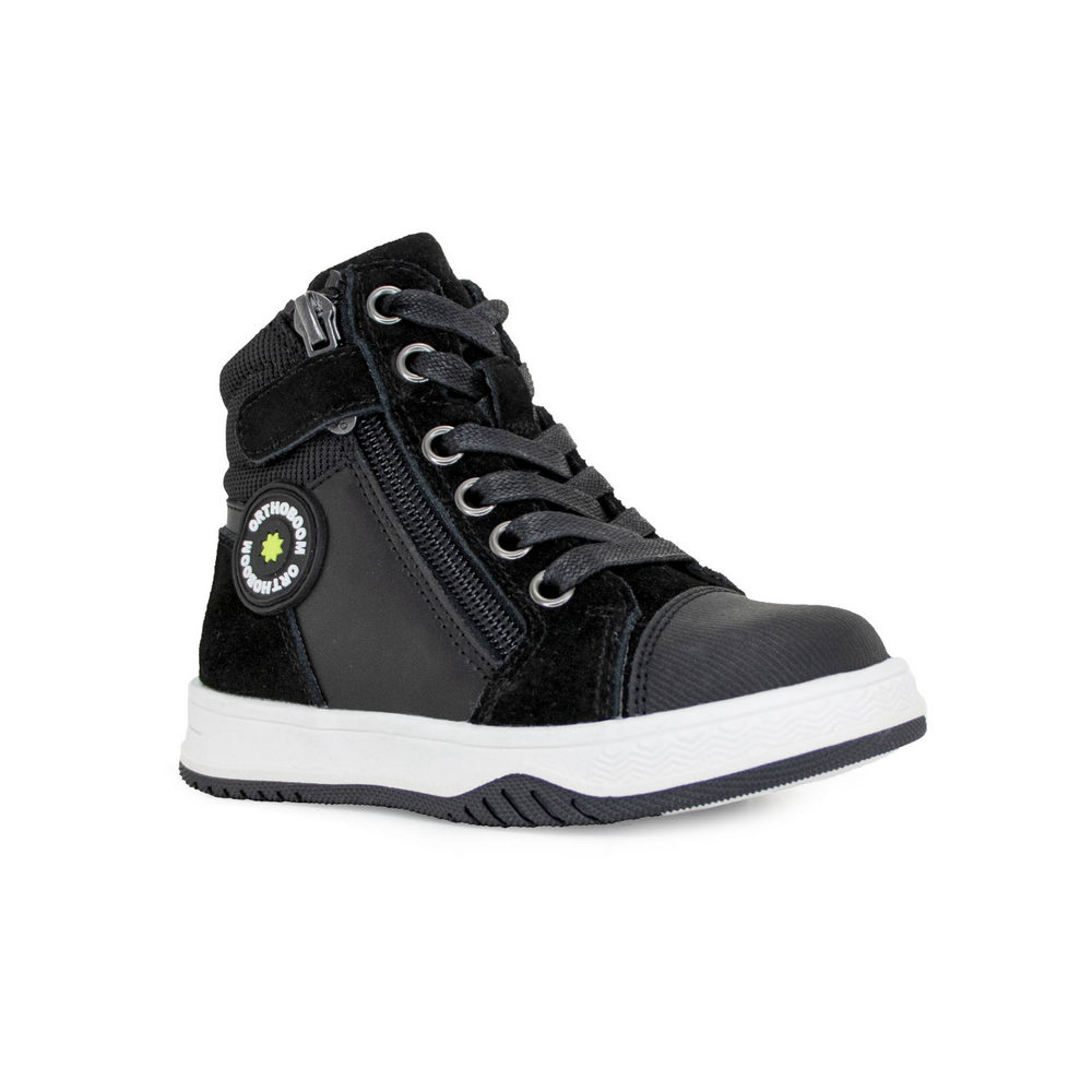 Ботинки Orthoboom 81036-01 черный бархат — обувь с уникальной конструкцией, разработанной для предупреждения и корректировки нарушений строения стопы, борьбы с мозолями, натоптышами, пяточными шпорами. Амортизирующая подошва, регулировка полноты и надежная фиксация за счет удобной застежки — Шнуровка+ молния, анатомическая стелька обеспечивают правильное положение ноги, равномерное распределение нагрузки при ходьбе и снижение усталости. Материал верха (натуральная кожа) демонстрирует впечатляющую устойчивость к износу, а подклад (флис) не натирает даже при высокой двигательной активности. Модель разработана профессиональными дизайнерами с учетом актуальных модных трендов, ведь Весна - Осень — самое время вспомнить о стиле.