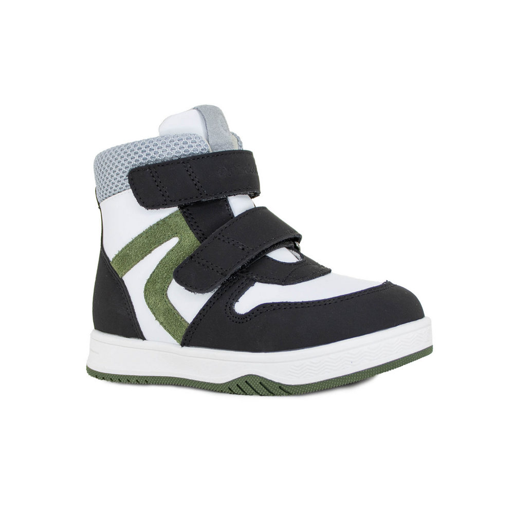 Детские ботинки Orthoboom 81147-15 бело-черный с травяным — модель с продуманной конструкцией и уникальным дизайном. Инновационная анатомическая колодка, обеспечивающая правильное положение стоп, сводоформирующие стельки, а также другие ортопедические элементы препятствуют развитию плоскостопия или предотвращают дальнейшую деформацию, если патология уже выявлена. За счет широкой раскрываемости модель легко надевается и снимается без дискомфорта. Для верха используется натуральная кожа/текстиль, внутри — флис, что гарантирует отличную износостойкость и правильный микроклимат. А нескользящая подошва снижает риск падения на любой поверхности. Весна - Осень в такой обуви пройдет с максимальным комфортом независимо от климатических условий.