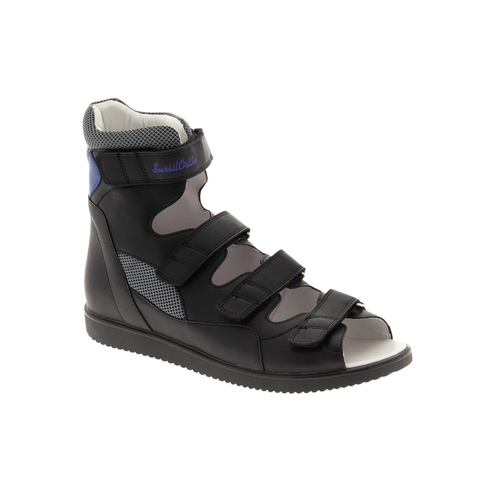 Сандалии изготавливают из нат.кожи. Обеспечивают их жесткой задней частью и берцами, которые отлично поддерживают стопы при их отклонениях. Высокий берец необходим для иммобилизации движения голеностопа. Это дает возможность суставам развиваться правильно или предотвращает развитие деформаций, эффект достигается при регулярном ношении.