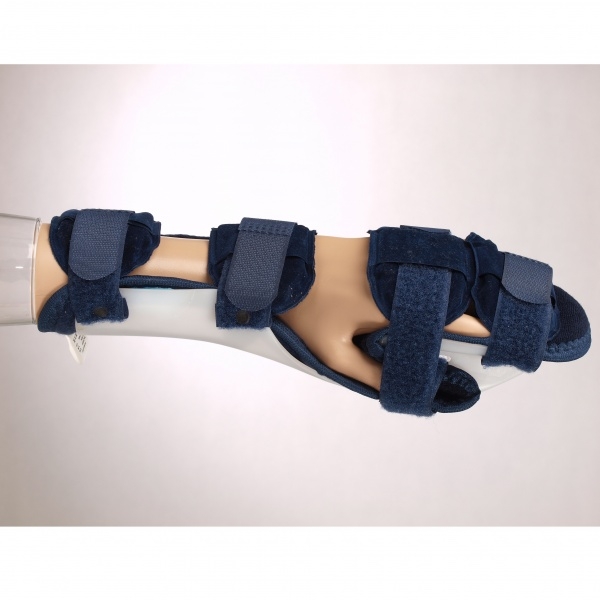Фиксация изделия обеспечивается четырьмя застежками «велкро». Изделие надежно фиксирует предплечье, лучезапястный сустав и кисть. Тутор располагается по внутренней поверхности конечности, исключая ротацию, сгибание и разгибание.