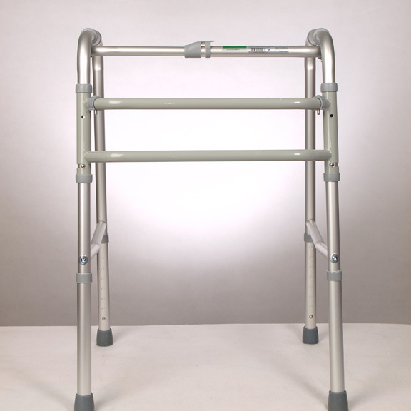 Ходунки складные изготовлены из легкого алюминиевого сплава. Рама снабжена противоскользящими ручками. Ходунки как вид реабилитационного оборудования необходимы в послеоперационный или посттравматический период, когда движение является основным лечебным фактором для быстрого восстановления. Ходунки поддерживают больного во время ходьбы. Также используются при возрастных изменениях опорнодвигательного аппарата и при хронопатологиях нижних конечностей. Могут использоваться в модификации «шагающие» или «не шагающие». В начальном периоде реабилитации используются «не шагающие» ходунки. Когда больной обретает уверенность движений, фиксаторы переставляются в положение «шагающие ходунки», для развития и восстановления мышечной активности и координации движений. Усиленная рама позволяет использовать ходунки для лиц с избыточным весом.