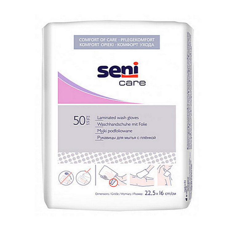Рукавицы SENI CARE для мытья с водонепроницаемой пленкой, 50 шт./уп.